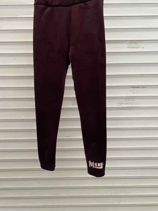 бордові лосіни на дівчинку, велюрові ,теплі , гарна якість, є 2 розміри: довжина 57 см на дівчинку 3-4 роки , довжина 72 см на дівчинку 5-6 років, добре носяться і перуться, внизу напис МАКЕ