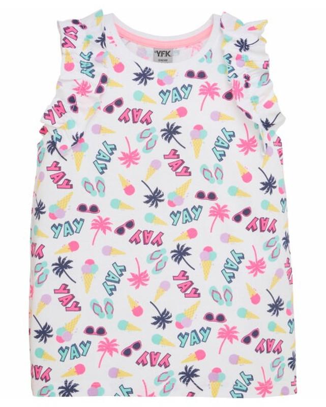 Майка Y.F.K. для дівчинки. Розмір: 128 Склад: 100% бавовна Дуже яскрава і красива! плечі - 22 довжина - 47,5 ПОГ - 34