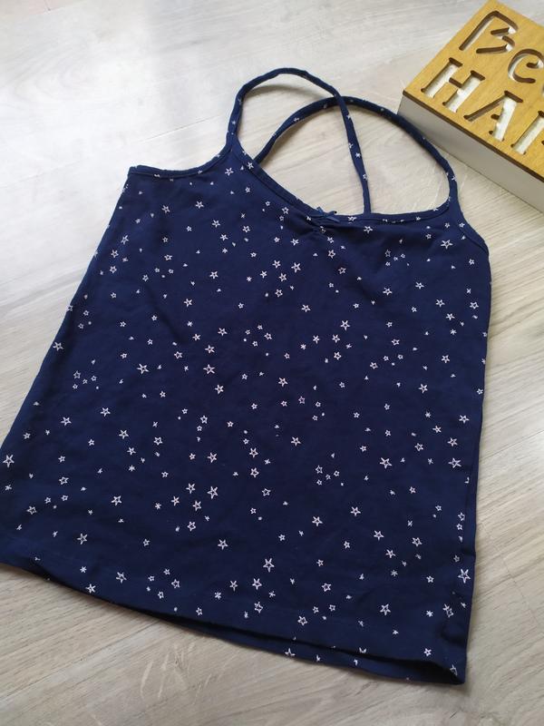 Красивая майка темно синего цвета в звездочки для девочки подростка на 11р. Бренд Next. Майка на брителях, взади с переплетением. Склад тканини 95%-котон, 5%-еластан. (19)