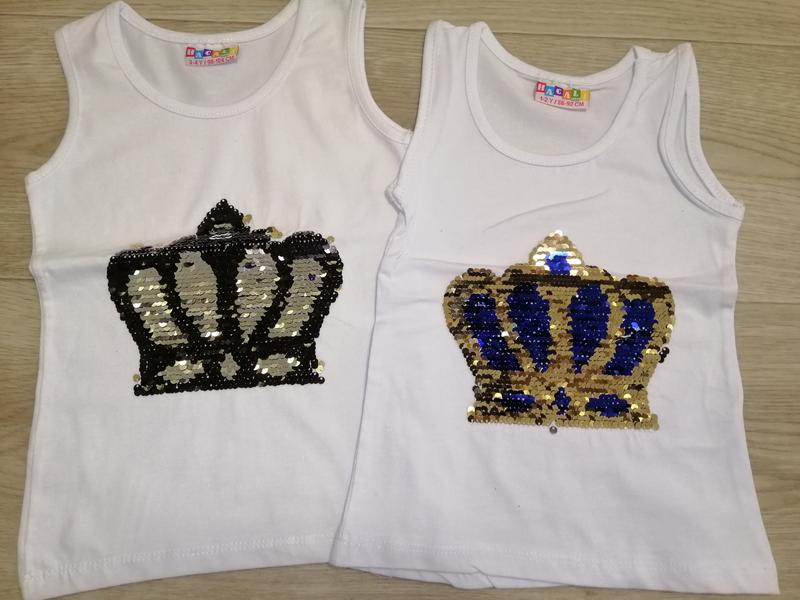 Майки с пайетками, пайетки меняют цвет 1-2 года длина от плеча 36см, ширина под руками 25см (белая, розовая, пудра) 3-4 года длина от плеча 39см, ширина под руками 26,5см (белая) 5-6 лет длина от плеча 42см, ширина под руками 28см (розовая, белая) Отправка новой или укроштой в день оплаты