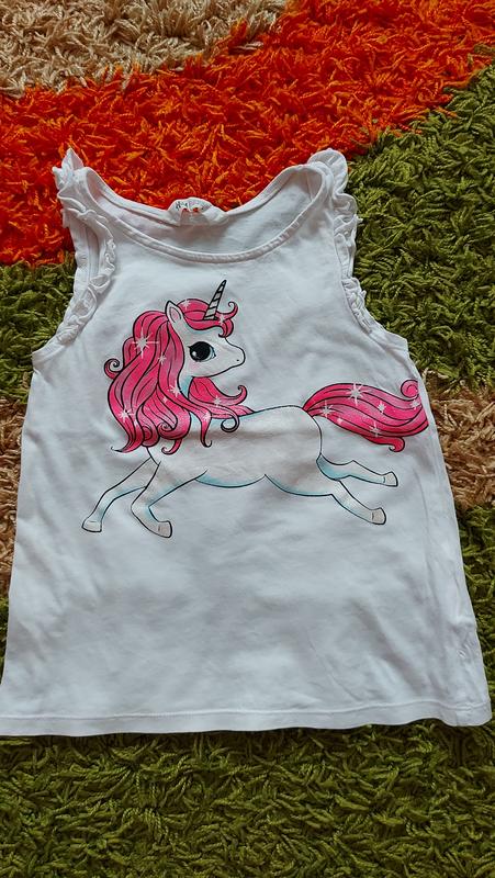 Майка на 7-8 лет с яркой аппликацией. Плечи 23, ширина 33, длина 44. Без дефектов.