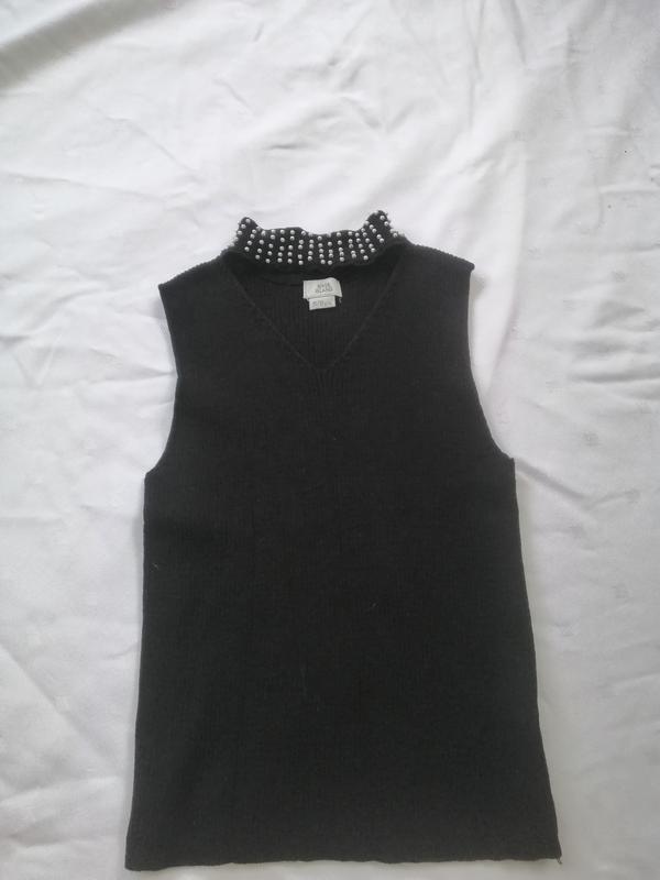 Чудова, стильна майка з цікавою шиєю. В рубчик. В чорному кольорі На шиї бусінки Пересилаю