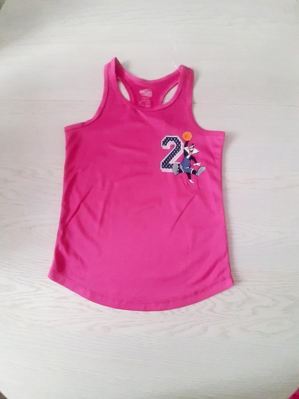 майка на дівчинку 8-10 років (134/140 см). заміри: півобхват грудей - 35 см; півобхват талії - 34 см; півобхват бедра - 35 см; довжина майки - 52 см