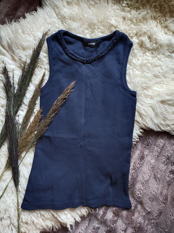 Темно синяя майка на 6-7 лет Длина-44 Ширина-26