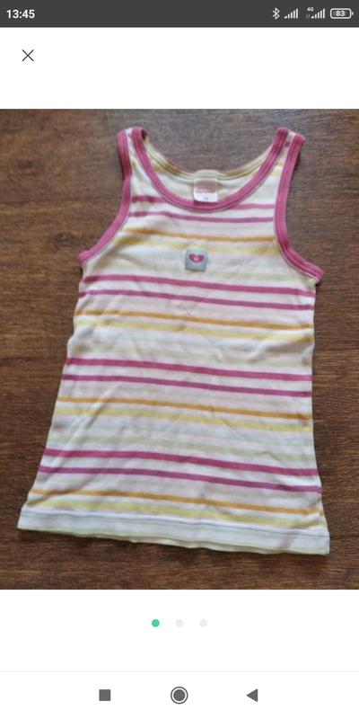 Хлопковая майка в полоску Длина 42 см Ткань мягкая и эластичная Спереди есть еле заметные пятнышки По всем дополнительным вопросам обращайтесь в любое время