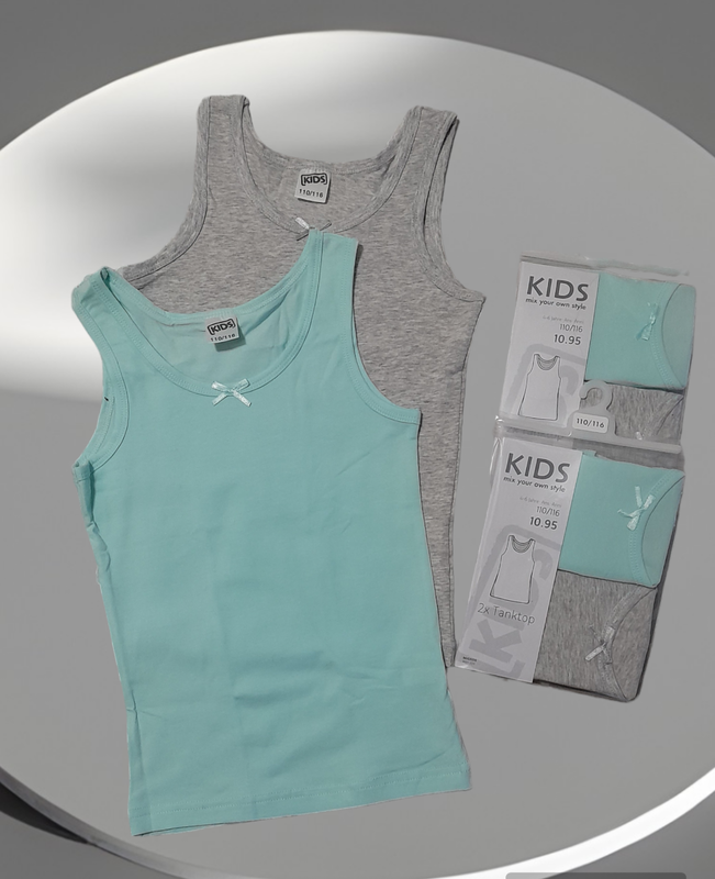 Дуже гарні маєчки для дівчаток. Фірми Kids в упаковці дві штуки розміра 110-116 см 122-128 см ціна одної маєчки 81 гр
