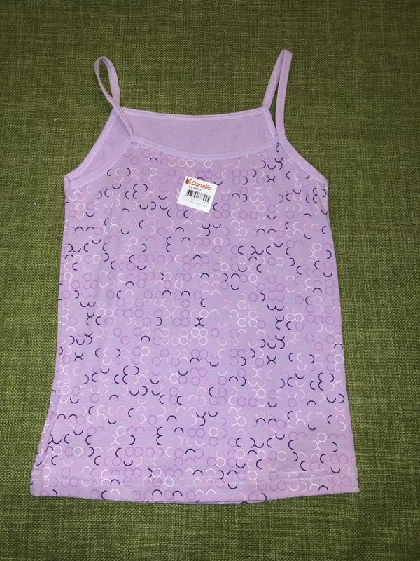 Майка на дівчинку 4/5 років Розмір: 110/116 Півобʼєм по груді 26 см Довжина 43 см Тканина: 95% бавовна; 5% еластан Колір: фіолетовий