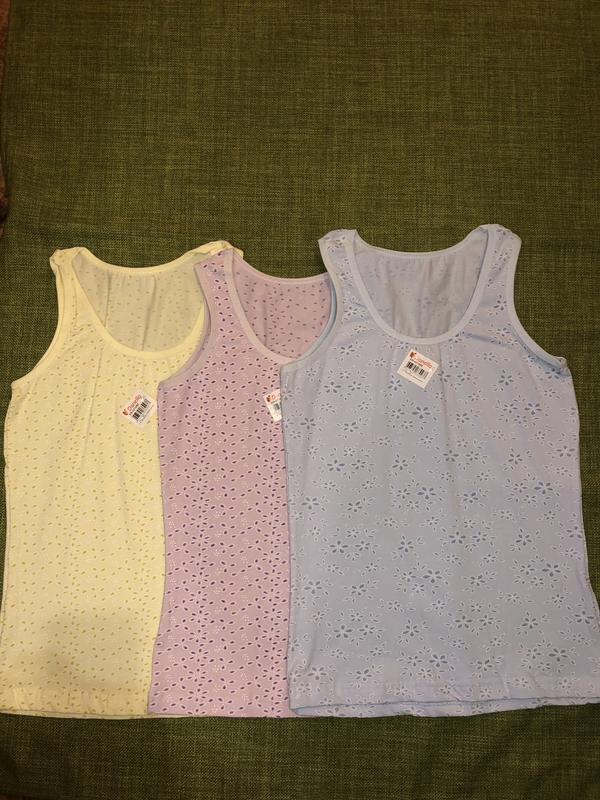 Майка на дівчинку 8/9 років В наявності 3 шт різного кольору Розмір: 134/140 Тканина: 95% бавовна; 5% еластан Колір: жовтий; бузковий; блакитний