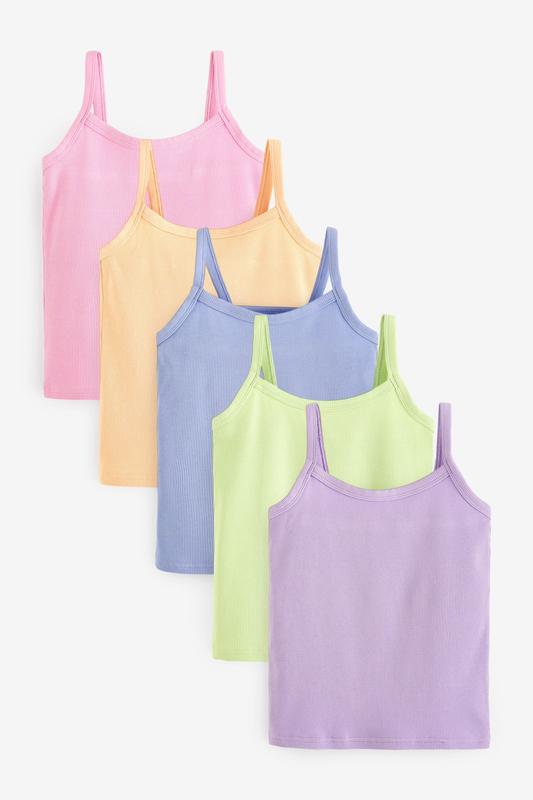 Размеры от 2 до 16 лет Под заказ любой размер. Цена зависит от размера. 92-116 - 740 122-140 - 800 146, 152 - 850 158-168 - 900 Набор из 5-ти маек в рубчик пастельных цветов с тонкими лямками. Можно стирать в стиральной машине. 95% бавовна, 5% еластан.