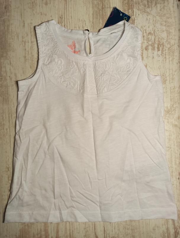 Майка на дівчинку 2-4 роки на зріст 98/104 см, Німеччина. Дуже мила майка з вишивкою, що застібається на спині. Виміри дл 41,8 пог 30,9