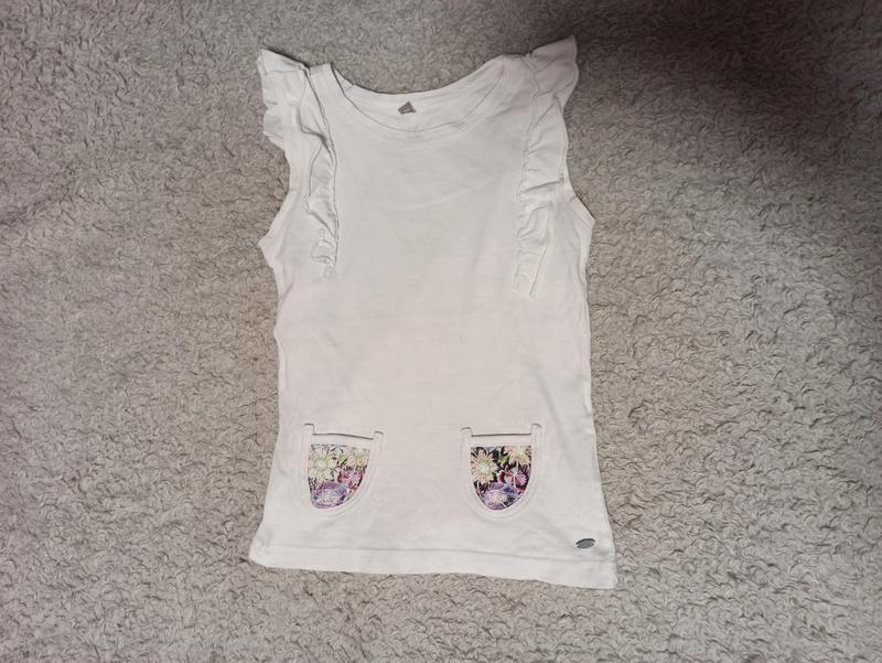 Літня майка з оборками на плечах. Є дві маленькі кишеньки.