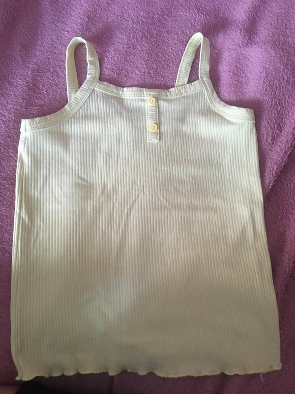 Дитяча майка на ріст 130-140 заміри дам , знизу невеликі рюшки а зверху гудзики , майка чудово підійде на весняну або літню прогулянку , можливий торг , пишіть в любий час , дефектів намає💐