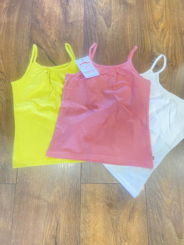 Сет спагеті-топ із 3 шт р.116 100% бавовна Ціна за 2 шт! Білий можу віддати додатково на ньому про тупили пʼятна треба виводити. Розпродаж залишків в магазині. Дивіться інші оголошення.
