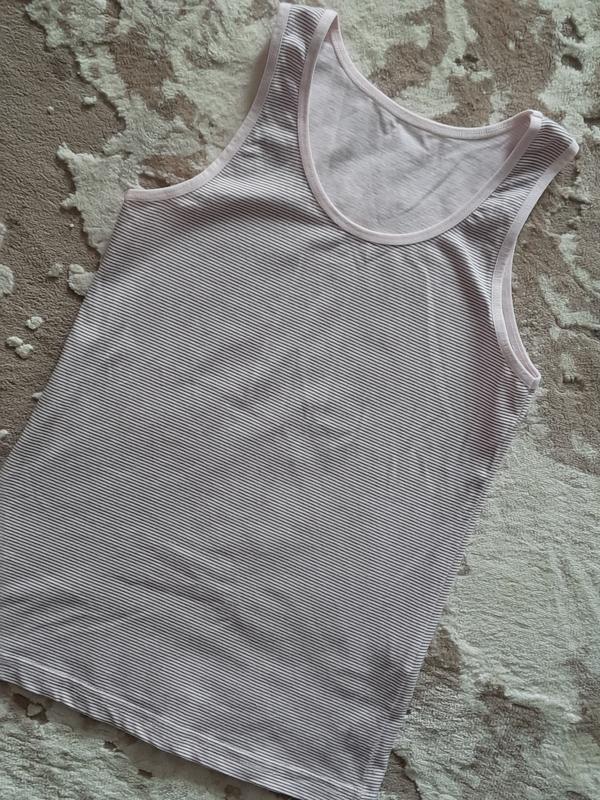 Майка на дівчинку у дрібну смужку.Одягнута 1 раз. Довжина 52 Ширина під пахвами 32 Розмір 134,140