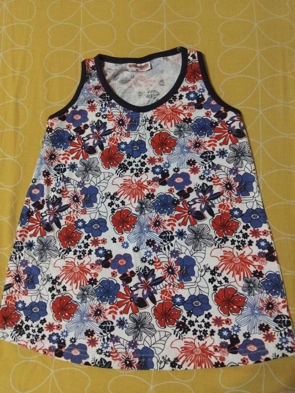 Яскрава,простенька майочка. Довжина-52. Ног-31. Ширина внизу-45.
