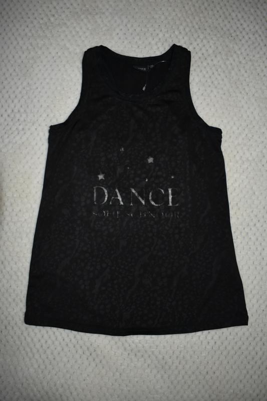 Класна спортивна майка. Добре тягнеться.Нова, але трохи подстерт блискучий принт. Заміри пахви 36 см, ширина внизу 44,5 см, довжина повністю 57,5 см
