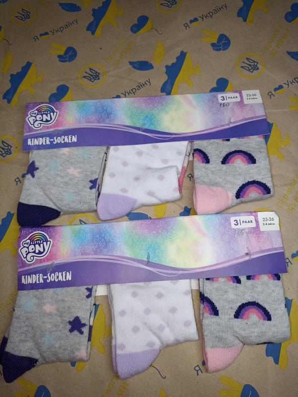 Детские носки с принтом пони. Хорошее качество. В упаковке 3 пары. 23/26р.