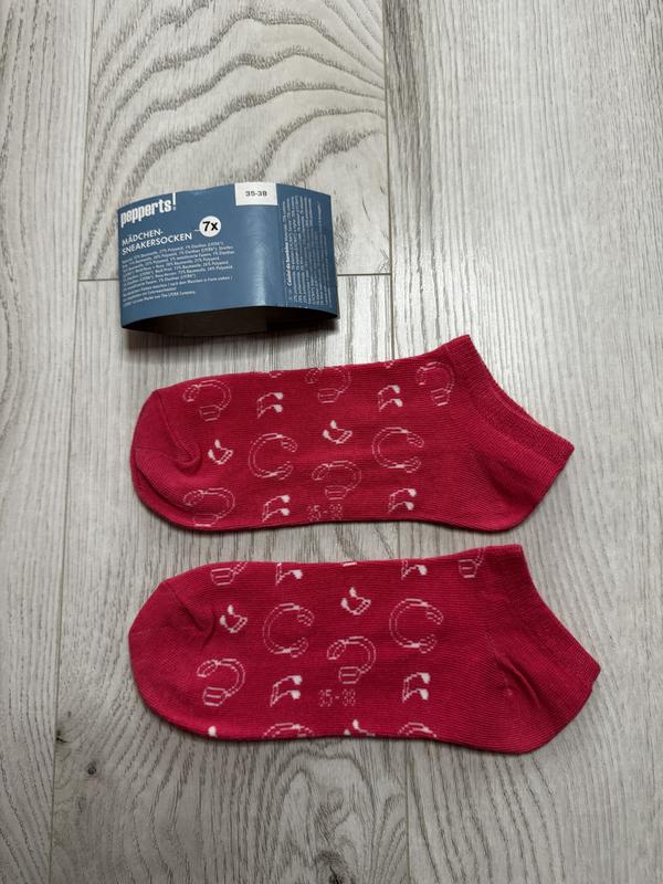 Шкарпетки Pepperts короткі Колір рожевий, не малиновий, камера засвічує фото, в реалії будуть тускліші!!! Розмір дитячий 35-38 Виробник: Німеччина 🇩🇪 Оплата : на картку ! Відправка: - Нова Пошта - Укрпошта , Міст Експрес (+ 5 грн на пакування!!!)