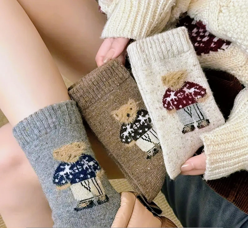 Дитячі теплі шкарпетки з дизайном Тедді Відмедика. Милий тваринний візерунок.