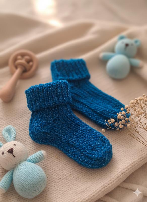 Блискучі сині шкарпетки ручної роботи (handmade)