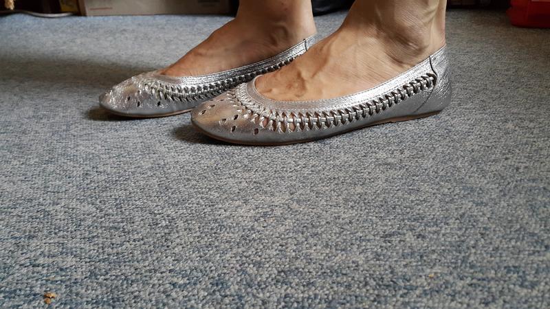 Кожаннын серебристые балетки на узкую ножку 35 размера,легкие и удобные ,с элементами плетения,в хорошем состоянии. Д.стельки-23-22см,ширина стопы-7.5см. #84