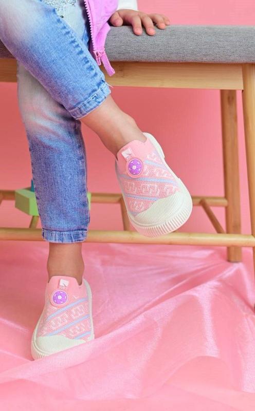 Розовые текстильные мокасины. Хорошо держатся на ножках, не слетаются-идеально в садик брать. Размеры: 23, 24, 25.