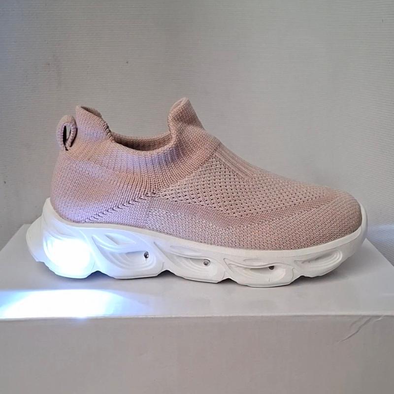 Мокасины детские розовые тканые светятся с подсветкой, очень легкие