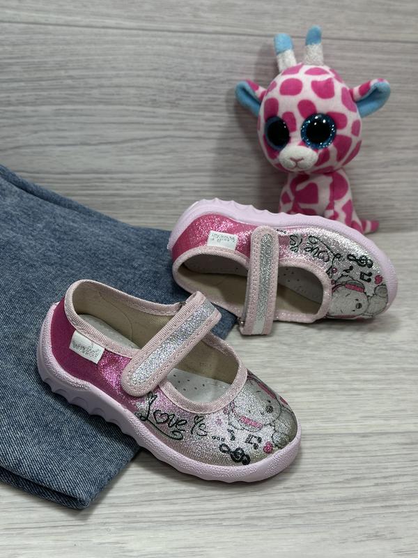 тапочки от ТМ «Валди» - это отличная повседневная и праздничная обувь для маленькой модницы. Материал: - верх и внутри качественный текстиль - кожаная стелька с профилактическим супинатором RelaxedFit - формованный жесткий задник - удобные застежки ÷ липучки - легкая, гибкая и износостойкая подошва из поливинилхлорида. 23-14,5 см