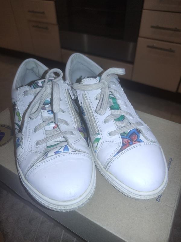 Макасины, Полуботинки,легкие кроссовки для девочки от польской фирмы Бартек 34 размер(22см).Угощение в идеальном состоянии, полностью кожаное как снаружи так и в середине,меет супинатор,также имеющий скрытый замочек.На ножке выглядят нарядно, по летнего.При покупке маленькой модницы будет сладкий сюрприз