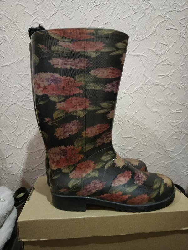 шикарні чобітки марожет гумові в квіти..розмір 38-39 устілка 25.5-26