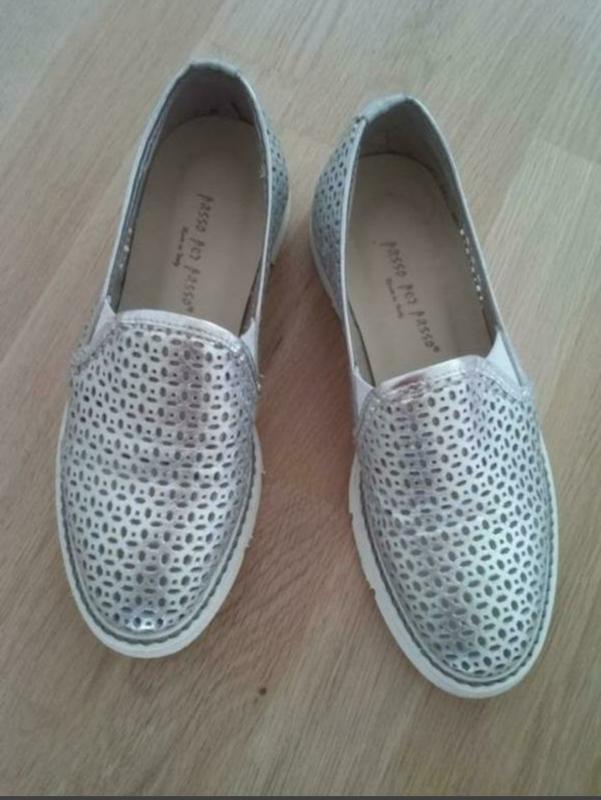 Стильні легенькі лофери ф. PASSO PER PASSO, Італія, 35р, устілка 22,5 см, збоку резиночки, повністю перфорація,м'яка ортопедична шкіряна устілка ,міцна підошва,стан ідеальний, крім одного нюансу на останньому фото, який при носінні не замітний
