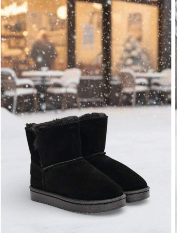 Теплое детские угги черного цвета с лейбой. Страна производитель: Китай Материал: Эко-замша, эко-мех, резина Качество: отличное. Размеры 25, 26,27,28, 29, 30 Мех плотный, на ножке смотрит очень опрятно.