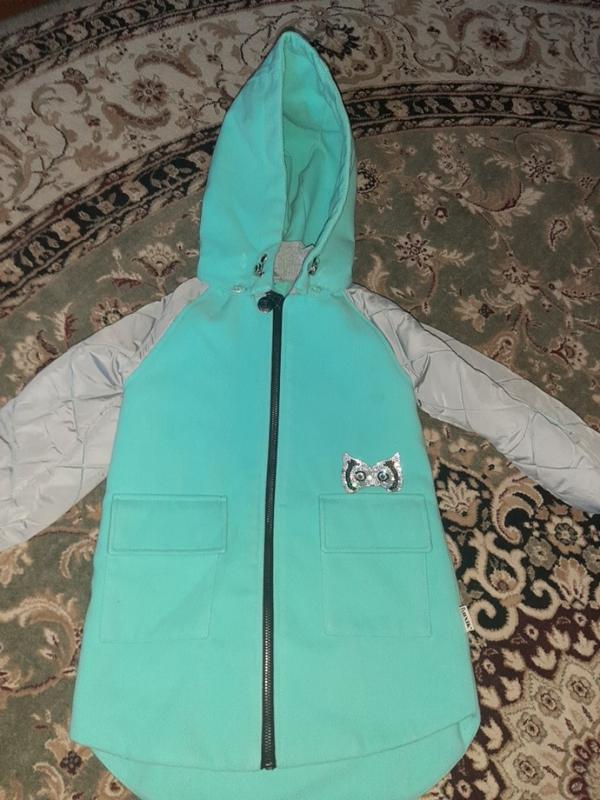 Пальто ріст 104, довжина спини 58 см .довжина спереду 48 см, комір 5 см. рукав від плеча 45см. п.о грудей 34 см.
