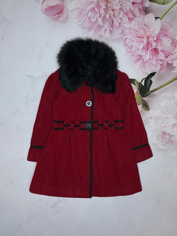 Вовняне стильне пальто. комір-ск. хутро. стан як нових. мають дуже крутий вигляд. 4-5 років M&S довжина 57. ПОГ 35. рукав 38