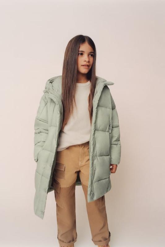 Дуже стильне пальто на теплу/середню осінь/весну/зиму, легке, не важке, мʼяка не тонка тканина. Розмір на зріст 128 см. По замірам довжина 68, ширина по грудях 45, рукав від плеча 43, плечі 38. Є дефект, вказаний на останньому фото