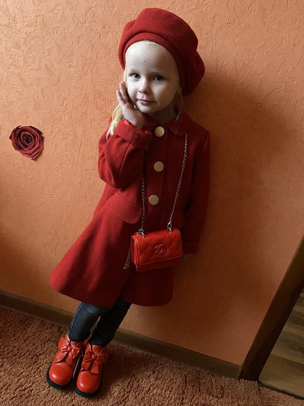 Дитяче пальто на дівчинку 4-5 років. На фото 3 роки і підкачкні рукавчики. Колір червоний. Вовна. Шилось під замовлення. З беретиком