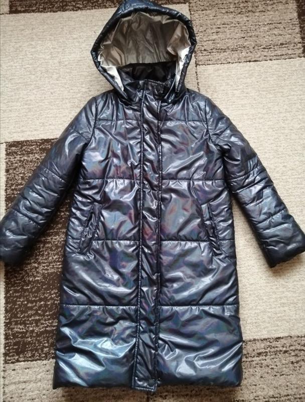 Пальто для девочки, демосизонное, длинненькое. Длина рукава по внутреннему шву 35 см, длина пальто 80 см, объем в груди 46 см. На рост 134 см.
