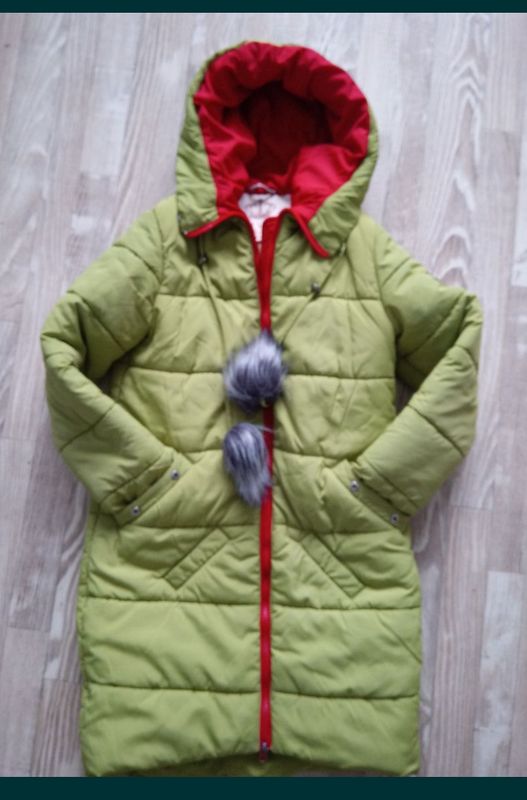 Зимова куртка для дівчинки.нижче коліна, опушка сіре хутро(як помпони) штучне,зємне. Рукава можна підкочувати, замок можна розстібати знизу і зверху, що дуже зручно.