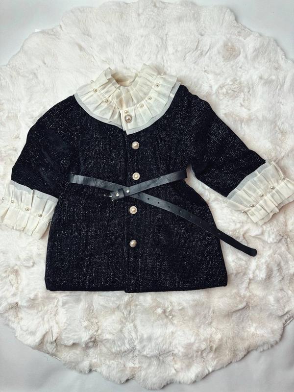 Стильне чорне пальто для дівчинки – ідеальний вибір на весну! Матеріал: трикотаж із люрексом – ніжний, м'який і водночас елегантно блискучий., підклад нейлон Колір: класичний чорний – пасує до будь-якого образу. Деталі: пояс підкреслює талію, додаючи витонченості, застібається на гудзики Стиль: сучасний крій для модних юних леді. Розміри 90-140