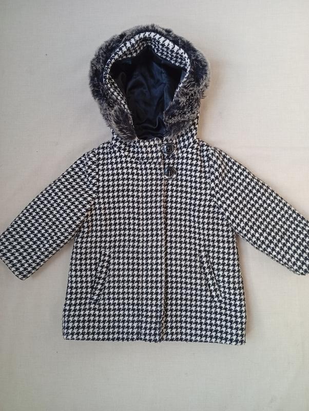 Продам пальто б/у в хорошем состоянии.Длина по спинке 43 см.длина рукава от плеча 31 см.ПОГ 35 см. Мех на капюшоне съёмный,на пуговицах, два кармана.