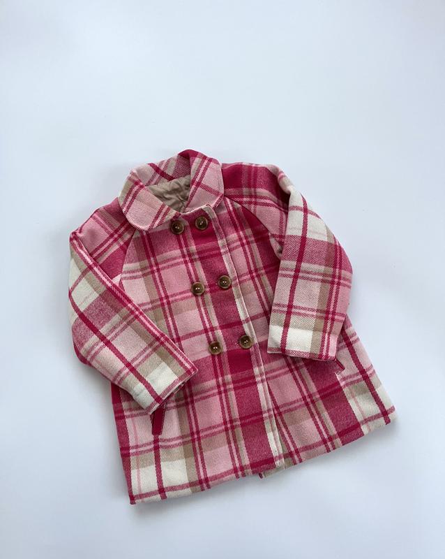Стильне дитяче пальто від бренду Nutmeg в яскравому рожевому кольорі з клітинкою. Основні характеристики: • Розмір: 92, але буде на довше • Матеріал: поліестер • Колір: рожевий в клітинку • Застібка: ґудзики • Стан: ідеальний (10/10) Пальто має класичний крій з відкладним коміром та довгими рукавами. Двобортна застібка на ґудзики забезпечує надійне застібання. Контрастні манжети додають стильності образу. Ідеально підходить для прохолодної погоди. Якісний поліес