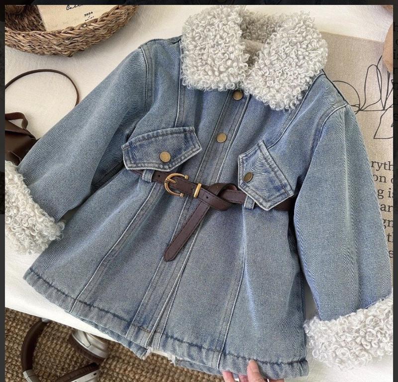 можна носити з пояском і без верх - джинс, підкладка - імітація вівчини, в рукавах тоненький шар синтепону + підкладка, застібка - металеві кнопки замір рукава від плеча - повна довжина (підворот -6см); ЗАМІРИ: 100р: довжина 46см, ширина 39см, рукав 37см; 110р: довжина 50см, ширина 42см, рукав 40см; 120р: довжина 52см, ширина 44см, рукав 43см; 130р: довжина 54см, ширина 46см, рукав 45см; 140р: довжина 58см, ширина 50см, рукав 48см;