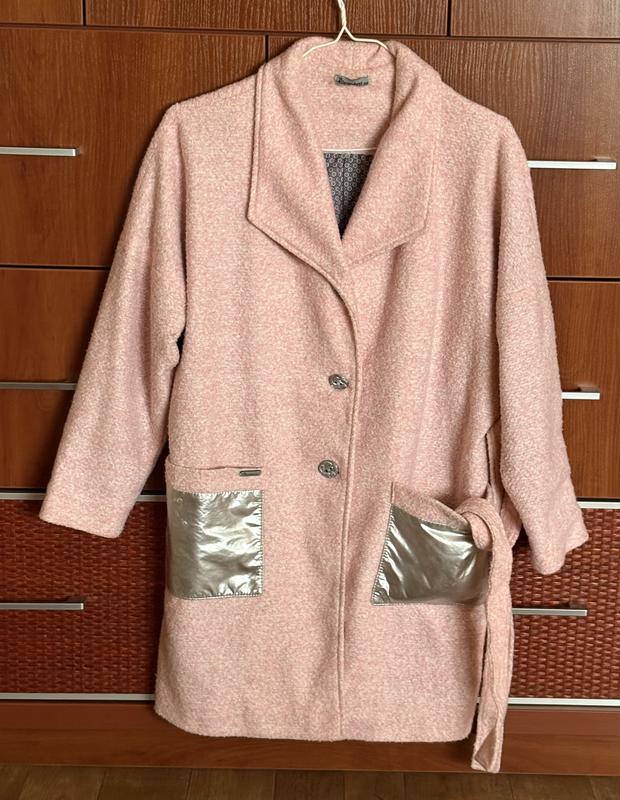 Пальто для дівчинки ніжно рожевого кольору з кишенями є пасок є підклад на зріст 158см