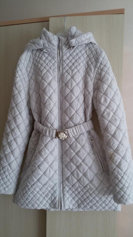 Зручне стьобана пальтечко на тонкому синдипоне. Легкий і практичний. Носити можна кілька років, так як рукавчик підкачується і довжина дозволяє. Капюшон відстібається. Загалом пальтечко виглядає новим, але є декілька недоліків. Це пояс - ми купили і не побачили, що пояс шлюбної( перекрученый) і камінчики на ньому відпали після прання. Також на внутрішній стороні рукавів є цятки - в шкарпетці зовсім не помітно. В іншому пальтечко виглядає добре. На всі питання відповім.