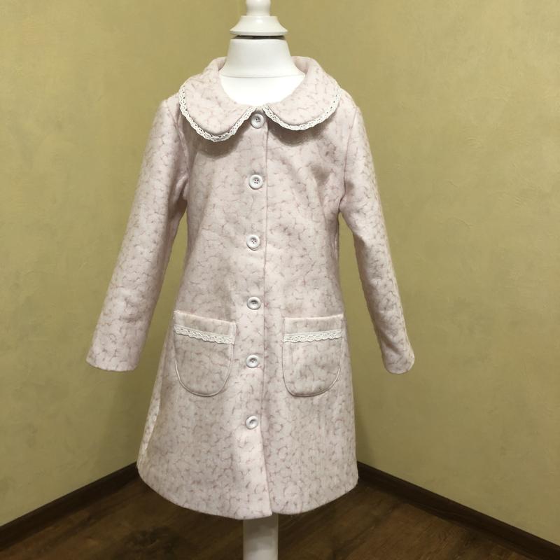 Кашемировое пальто { под мрамор}, на подкладке. Декорировано хлопковым кружевом. 110 размер. Ручная работа.
