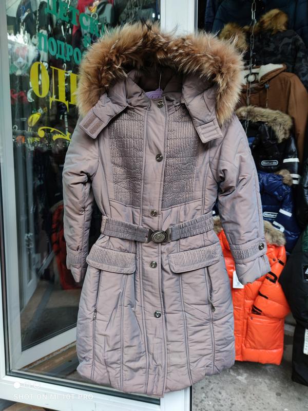 Пальто зимове для дівчинки. фабричний Китай . фірма RM. Лілового кольору з перламутром. Дуже якісне та тепле, непромокаючий. Хутро натуральне, єнот розміри 135/140/146