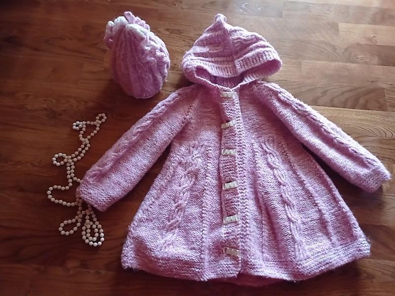 В'язане польтішко і шапочка із шерсті.Ручна робота.Пальтішко тюльпанчик для маленької принцеси.Узор вісімки,прямокутні гудзики.Ваша донечка буде дуже стильна у цьому пальтішку,бо воно виглядає бомбезно.Щаходьте в магазинчик знайдете ще багато цікавих речей.