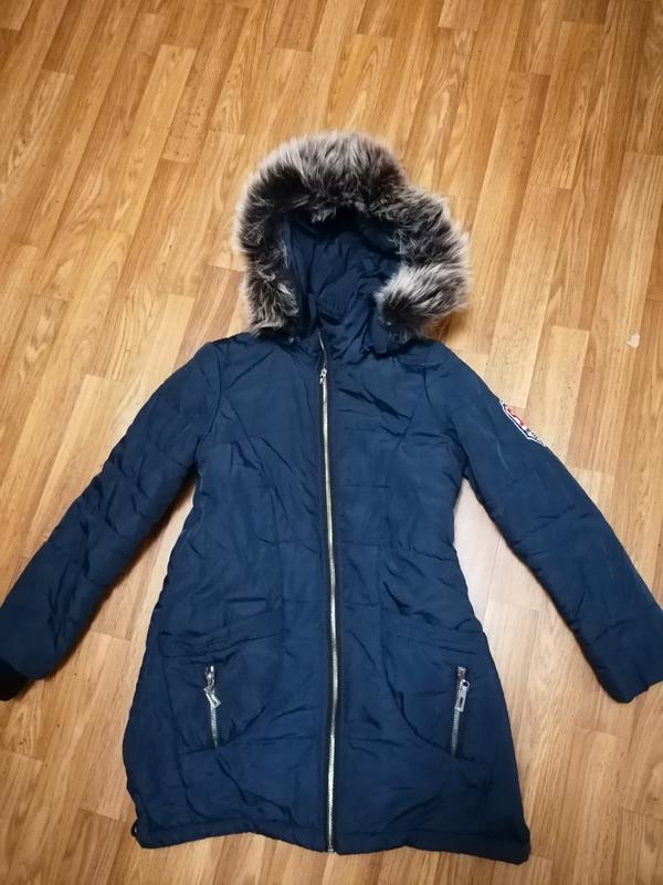 Зимнее пальто на девочку, хорошего качества,натуральный мех наполнитель холлофайбер, на 8 лет.