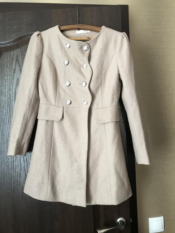 Бежеве вовняне пальто з красивими гудзиками в ідеальному стані розмір s