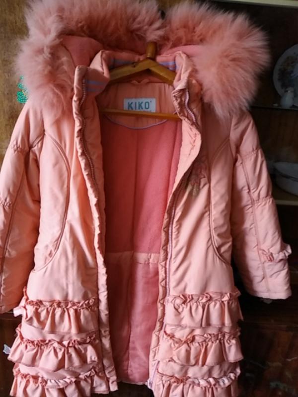 Зимнее пальто на девочку ростом 122см. Мех на капюшоне и сам капюшон отстёгиваются.